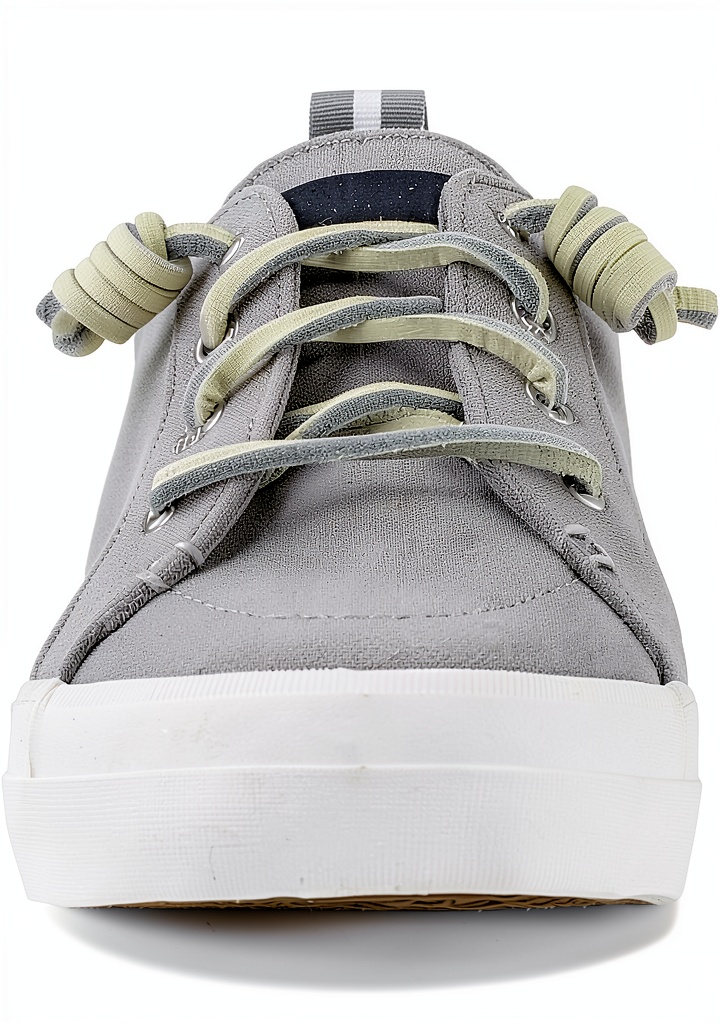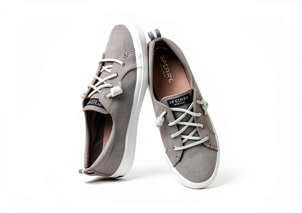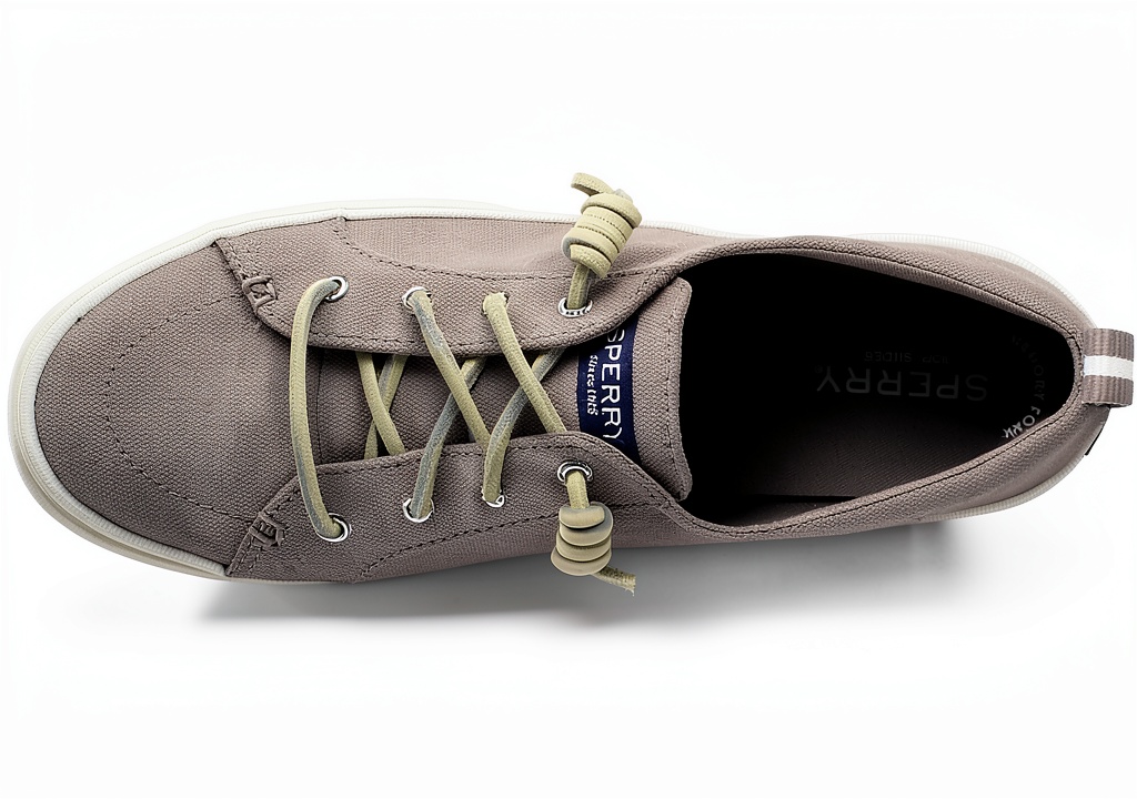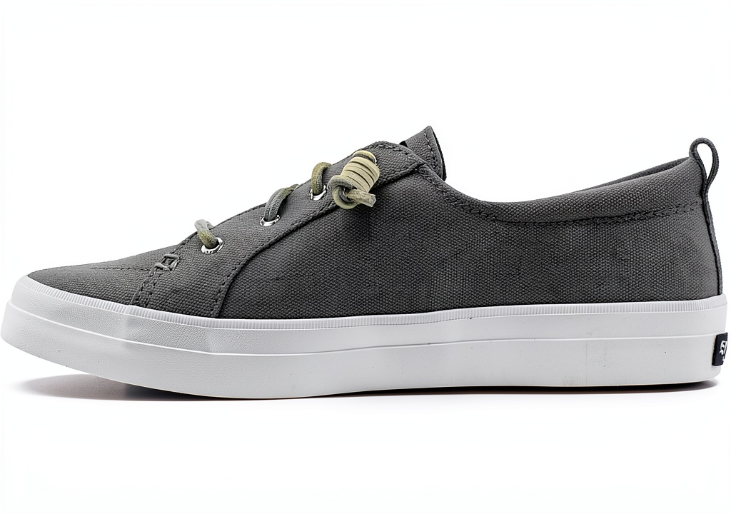 The Sperry Womens Crest Vibe Linen Sneaker in grey is designed for everyday comfort and style. Crafted with a durable construction that securely bonds the upper to the rubber outsole, these sneakers feature a linen material that offers breathability and a lightweight feel. Key specifications include product dimensions of 16 x 7 x 5 inches, weighing 12.48 ounces, with item model number STS99042. The elastic back ensures a secure, slip-on fit, while rustproof eyelets add to the longevity. A removable footbed provides customizable comfort and arch support, making them ideal for extended wear.