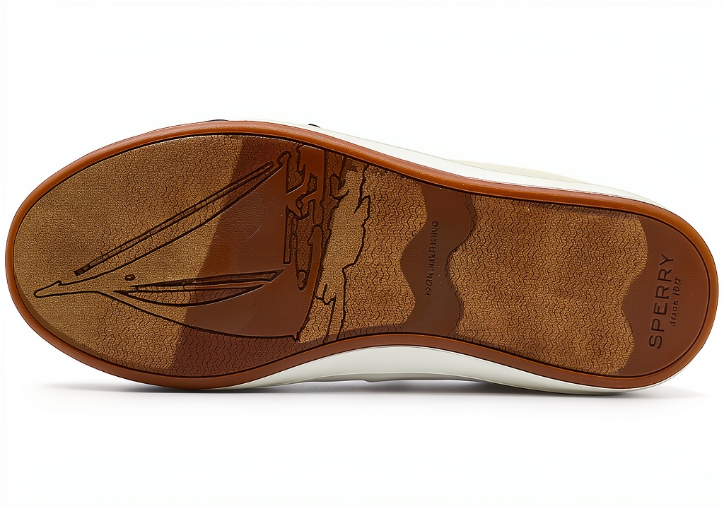 Sperry womens sneakers in White and Ecru colors displayed on a clean background