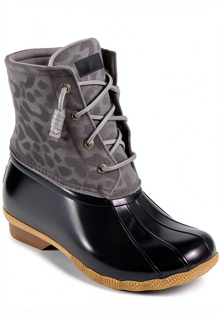 Sperry womens rain duck boots combine classic style with practical functionality, featuring a waterproof design to protect against moisture. Crafted from durable materials, these boots include a rubber sole for superior traction and a comfortable fit. Weighing 4 pounds, they offer stability without sacrificing ease of movement, making them a go-to choice for unpredictable weather. Available in sizes from 6 to 11 and colors like Dove/Sparkle Textile and Cheetah Grey, they cater to various preferences while maintaining Sperry’s reputation for quality.